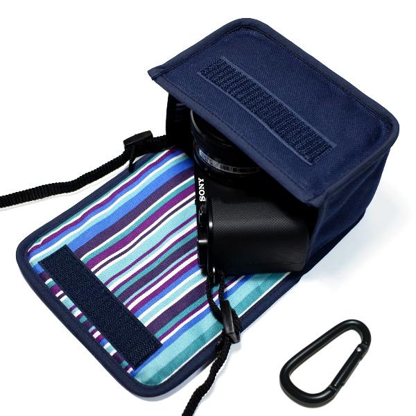 ソニー VLOGCAM ZV-E10ケース カラビナ付(ネイビー・アズーリ)パワーズームレンズキット suono ハンドメイド
