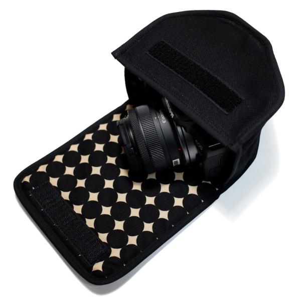 キヤノン EOS R10 ケース (ブラック・マーブルドット) RF-S18-45 IS STMレンズ用 ハンドメイド 日本製 Canon