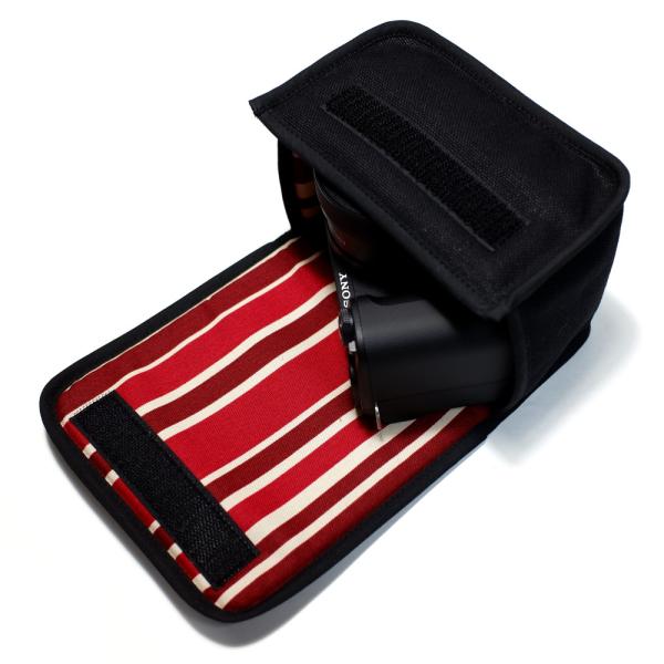 ソニー VLOGCAM ZV-E10 II ケース (ブラック・ボルドーストライプ) パワーズームレンズ用 suono ハンドメイド 日本製 SONY