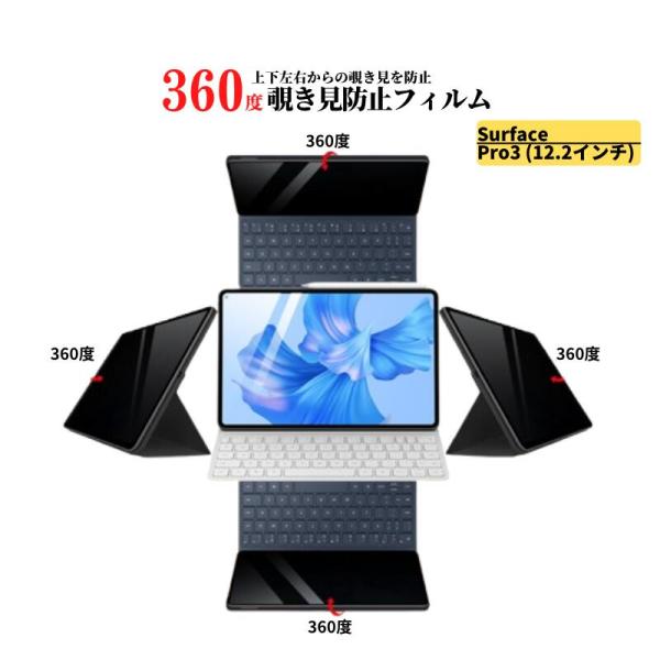Surface Pro 3 360度 覗き見防止 ガラスフィルム フィルム 強化ガラス 光沢 指紋防止 飛散防止