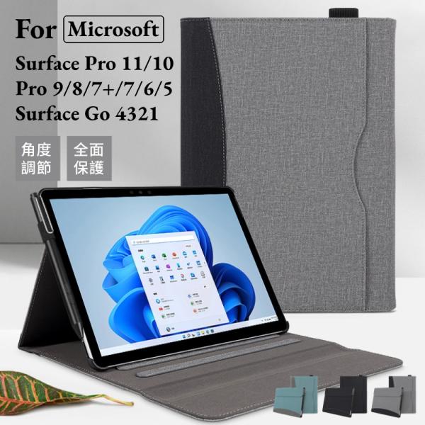 Microsoft Surface Go 4 3 2 1 ケース Surface Pro 11 10 9 レザーケース 8 7654 用手帳型キーボード収納 スタンド保護カバー 保護ケース 収納ポーチ 収納バッグ
