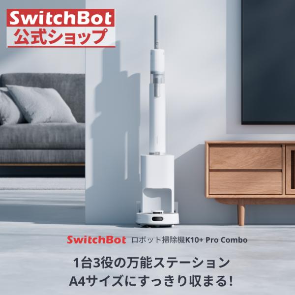 - 製品特徴本商品はWorks with Alexa認定を受けたAmazon Alexa対応端末です。※本製品は2.4GHz帯の電波周波数帯にしか対応しません。【3in1設計、お掃除はこれ1台で完結】ロボット+スティックが1つのステーションに。3in1の省スペース設計、家まるごとのお掃除を「これ1台」で完結。【世界最小級ロボット掃除機K10+ Pro】外出中や忙しいときは、ロボット掃除機に全部おまかせ。世界最小級で狭い空間もスイスイキレイにします。3000Paパワフルな吸引力でカーペットの奥に潜む毛やゴミもしっかり吸引し、お掃除シートで拭き上げます。家にいなくても、床のキレイが続きます。【コードレス掃除機】最大稼働時間41分、4つのノズルとブラシ(床用・2Way隙間用・すき間用・ダニ取り)付き、床やカーペットはもちろん、ソファの縫い目や天井なども、自在に掃除できます。ソファの上や窓枠、階段などロボットでは届かない場所や、週末の大掃除にはスティックを。床から天井まで「100%キレイ」を実現します。【デュアル集塵ステーション】ロボットも、スティックも、ゴミ収集は全自動です。FusionBaseでロボットとスティック両方の集じんと充電を1台のステーションだけで対応します。3Lの抗菌紙パックで、面倒なゴミ捨ては70日に1回でOK。【A4サイズの省スペース設計】A4サイズのスリムなボディに、ロボット掃除機とスティッククリーナーを収納します。ワンルームでも気にならなく便利に利用いただけます。【スティッククリーナー1.17KG軽量設計】軽量で扱いやすいです。わずか1.17KGのスティック、2.3KGのロボットで、ロボットもスティックも片手で持って2階、3階へ。一戸建てでも楽々移動できてストレスなくお掃除いただけます。*※ブラシやノズル、ヘッドの重さは含まれません。【夜間の作動も極めて静かに】SilenTech技術でロボットの騒音レベルは図書館の静かさも凌ぐ45dB、スティックの騒音レベルは一般的な掃除機と比べて10dBカット、アパート暮らしや忙しくて夜間しか使えない方でも、時間帯を気にせず静かにお掃除可能。なお、「おやすみモード」を搭載し、ゴミの吸い上げ禁止時間を指定できます。【お手入れは簡単】3L抗菌紙パックなのでホコリが舞ったり手で直接触れることもありません、イヤな臭いやアレルゲンにさようなら。ロボット掃除機には純ゴム製ブラシを使用し、長い毛が絡まっても大丈夫!さらに、コードレス掃除機にはV字型ブラシと42本の歯の構造で、巻き取った毛を絡まらせず、お手入れも楽ちん。ペットのいる家庭におすすめです。【SwitchBot製品に関するメーカーお問い合わせ先について】■ SwitchBot アプリ商品の初期不良・不具合・故障などについては、SwitchBot アプリのプロフィール画面から「フィードバック」を選択し、問題のご報告をお願いいたします。■ その他ご意見やリクエストなどがありましたら、お気軽に下記のE-mail アドレスまでご連絡ください。support@switchbot.jpメールでのお問い合わせは、ご回答までに3 営業日ほどお時間をいただく場合がございます。何卒ご理解賜りますようお願い申し上げます。製品名SwitchBot ロボット掃除機 K10+ProCombo型番W3002500 色ホワイトロボット掃除機サイズ248*248*92mmスティッククリーナーサイズ245mm*150mm*1100mm集塵ステーション195*220*826mm梱包サイズ56.5 x 45 x 29.3 cm梱包重量13.2kg電源バッテリー駆動;リチウム電池パック;電池内蔵対応OSPhone:iOS11.0+,Android5.0+;SwitchBotタグ:iOS13.0+,iPhone XRまたはその以降,Android5.0+,NFC機能があるAndroidスマホ;Apple Watch/Apple Watch Series2またはその以降、WatchOS4.0またはその以降使用環境屋内のみ使用寿命最大5万回の回転(1回の回転:時計回り180°+反時計回り180°)回転角度360°センサー地磁気センサー、加速センサー動作温度-10℃~45℃セキュリティー暗号化AES-128-CTRサードパーティーAlexa/Google/Siri/IFTTT/SmartThings/API保証期間ご購入日から2年間 メーカー希望小売価格はメーカーサイトに基づいて掲載しています関連商品はこちらSwitchBot 5年間延長保証 顔認証パッド/...