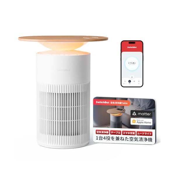 【1台4役】SwitchBot 空気清浄機 Table 脱臭 ワイヤレス充電 - スイッチボット 25畳 静音 小型 省エネ 大風量 360度全