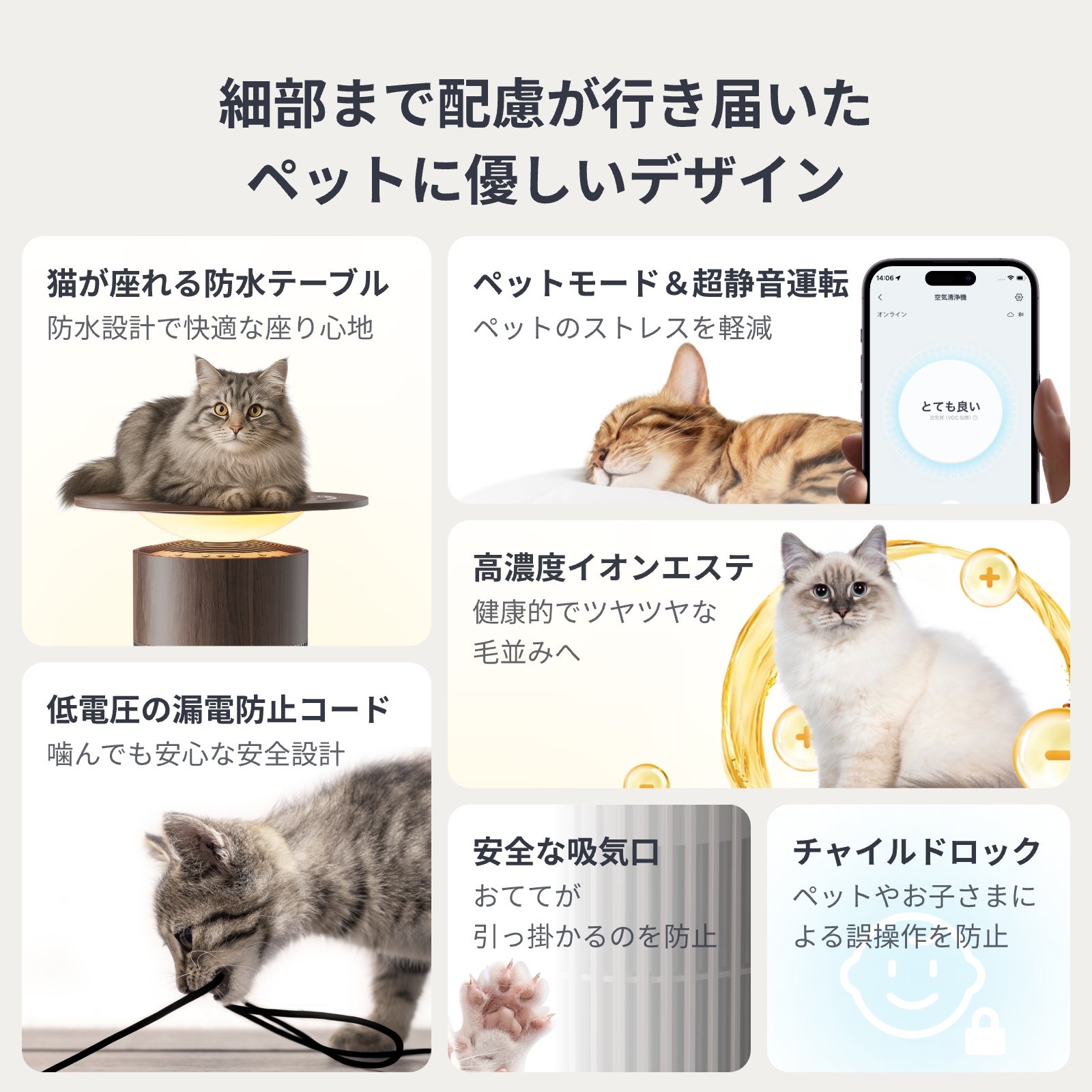 【5層フィルターで徹底浄化】360°吸気+HEPA+活性炭+高濃度イオンで毛・花粉・異臭・静電気も除去。