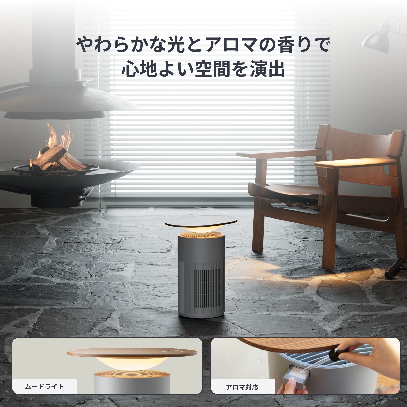 【1台4役】空気清浄機+防水サイドテーブル+ムードライト+ワイヤレス充電器の多機能モデル。