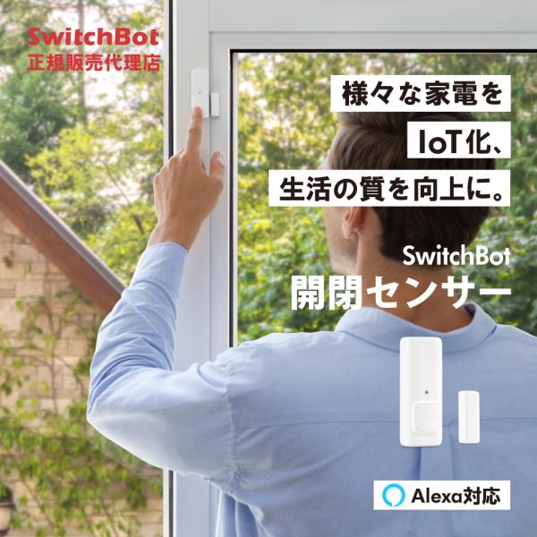 - ドアや窓の開閉を検知SwitchBot スイッチボット 開閉センサー 開閉状況検知 ドア 窓 ホワイト Alexa アラート 遠隔操作 スマートリモコン 簡単取付 スマートホームSwitchBot開閉センサーをドアや窓に貼るだけでドアや窓の開閉状況を検知できます。どこでも24時間にスマホから確認可能で安心感が得られます。帰宅と外出を認識可能SwitchBot開閉センサーはモーションセンサー搭載で、外出モードと帰宅モードを認識可能。外出モードと帰宅モードをトリガー条件にして、シーンを設定し、ドアを開ける・閉める瞬間に家電をオン・オフ。Alexaから音声通知開閉状況により、Alexaから開閉状態などカスタマイズの音声通知が届きます。※画像はイメージです。【製品特長】 ドアや窓の開閉を検知 SwitchBot スイッチボット 開閉センサー 開閉状況検知 ドア 窓 ホワイト Alexa アラート 遠隔操作 スマートリモコン 簡単取付 スマートホーム SwitchBot開閉センサーをドアや窓に貼るだけでドアや窓の開閉状況を検知できます。どこでも24時間にスマホから確認可能で安心感が得られます。 帰宅と外出を認識可能 SwitchBot開閉センサーはモーションセンサー搭載で、外出モードと帰宅モードを認識可能。外出モードと帰宅モードをトリガー条件にして、シーンを設定し、ドアを開ける・閉める瞬間に家電をオン・オフ。 Alexaから音声通知 開閉状況により、Alexaから開閉状態などカスタマイズの音声通知が届きます。ドアに貼れば、忙しい毎日が終わって帰宅したら、ドアを開いた際に、Echoデバイスから「おかえりなさい」という音声が通知します。 SwitchBotシリーズと連携 単体はもちろん、SwitchBotシリーズ製品と連携使用がさらに便利。「玄関に貼れば、扉を開くと、照明やテレビが自動にON」、「窓に貼れば、窓を開くと、加湿器やエアコンが自動にOFF」といった自動化を設置可能。 アラート通知機能 薬箱に貼れば、アラートにより実家の両親がちゃんと薬を飲むかどうかを確認。不審者がドアや窓を開けると、即座にスマホに通知が届きます。防犯対策に。 コードレスで置き場所様々 コンパクトで配線不要の電池式なので、窓やドアのほか、冷蔵庫、薬箱、ペットケージ、箪笥などにも。冷蔵庫に貼れば、冷蔵庫の開けっ放し防止対策に。 ※遠隔確認、アレクサ対応、アラート通知機能をご利用するにはSwitchBotハブミニが必要です。SwitchBotシリーズ製品と連携使用でしたら、Bluetooth範囲外にハブミニが必要です。 【製品仕様】 型番 W1201500-GH カラー ホワイト JANコード 0850007706425 本体サイズ 本体:約70.5×25.5×23mm 磁石:約35×12×12.5mm 本体重量 本体:約43g 磁石:約13g 材質 ABS樹脂 動作環境 -10°C~60°C / 20-85%RH 14F~140F 対応機種 Android 5.0+, iOS 11.0+ 製品構成 本体 ×1 製造元 SWITCHBOT株式会社 スイッチボットおすすめ商品 【switchbotシリーズは様々なシーンで便利な使い方ができます 日本正規販売代理店】 (スマートロック)…玄関ドアをオートロックに。マイホーム・マンションの玄関に後付け。工事不要取付簡単。iphone・スマホが鍵(カギ)になりスマートリモコンで簡単に開錠。防犯対策にも。Alexa(アレクサ) Google Home Apple Watch対応のロック。シンプルな黒 単体。 (ハブミニ)…エアコン・テレビ等赤外線リモコンを一つにまとめてアプリから操作可能。リモコンや電池カバー紛失、電池持ち電池切れの心配もなし。 (プラグミニ)…スマートプラグ本体にBluetooth機能とWi-Fi機能(2.4Ghzのみ)が備わっているので、デバイスの追加と操作がよりスムーズに。ハブ(hub)不要。遠隔操作。携帯で出張中や旅行中の防犯対策に活用できます。 (カーテン)…光センサーを内蔵し日差しを感知して自動で開閉。付け方簡単。SwitchBotハブシリーズと併用すると、スマートスピーカーの音声操作可能。Amazonアレクサ、Googleアシスタント、Siriショートカット、IFTTT、LINE Clova(Beta)対応機種。 (人感センサー)…赤外線センサーを搭載し、人の動きを検知します。電池式で置き場所自由。取り付け簡単。 (キーパッドタッチ 指紋認証パッド)…別売のスマートロックとお使いください。タッチパネル・指紋解錠で安全性UP。キーパッド/指紋認証パッド専用のカードキー(別売)で家族・ゲストとも共有可能。 (見守りカメラ)…アプリにてネットワーク経由で外出先からお家のリアルタイム状態を確認可能。防犯カメラとしても。2台,2階,2個,2つなど各部屋設置でセキュリティ強化におすすめ。動体検知。 (開閉センサー)…ドアや窓に貼るだけで開閉状況を検知でるドアセンサー。どこでも24時間スマホから確認可能。アラート通知機能も。