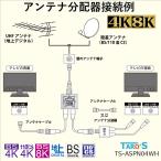 アンテナ分配器 2分配 出力側ケーブル付き 0.5m 2K 4K 8K 地デジ BS CS CATV 対応 全端子電流通過型 ホワイト TS-ASPN04WH