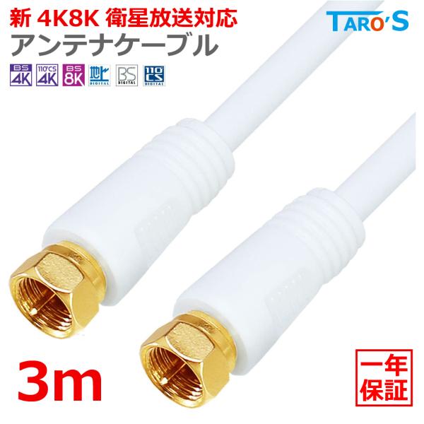アンテナケーブル 3m 同軸 S-4C-FB F型(ネジ式) - F型(ネジ式) 延長 4K 8K対応 テレビアンテナ コード 線 BS CS CATV 地デジ 4CFF-03WH ホワイト 白