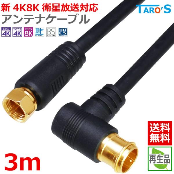 訳あり【送料無料 ネコポス便】TARO'S アンテナケーブル 3M 4K8K放送(3224MHz)対応 [L型プラグ⇔F型接栓プラグ] ブラック 4CLF-03BKRB