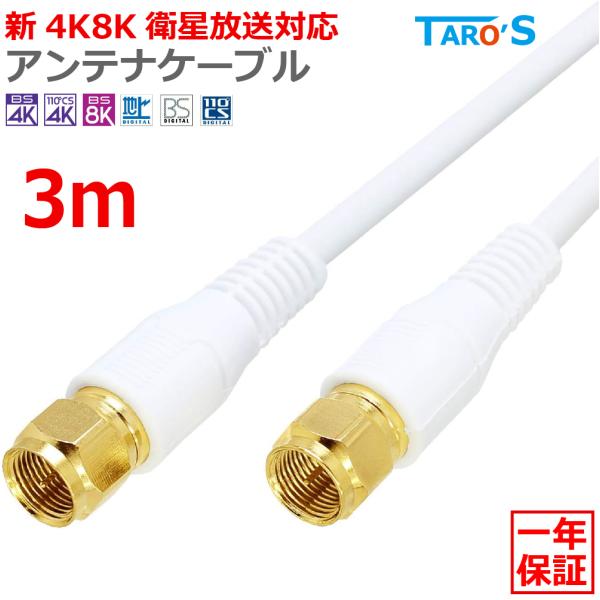 アンテナケーブル 3m 同軸 S-4C-FB F型(ネジ式) - F型(ネジ式) 4K 8K対応 テレビ アンテナ TV 配線 BS CS CATV 地デジ 衛星放送 4CFB-FF3WH ホワイト 白