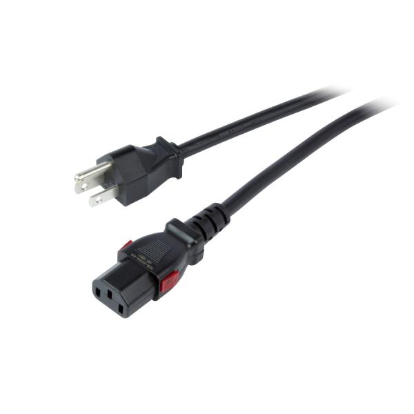 抜け防止ロック機構付き電源コード。
