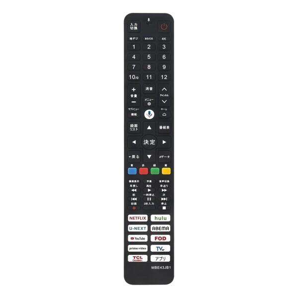 - 販売のリモコンは「代替リモコン」です。 代替リモコン:RC843JJB1 RC843JJB2 適用機種: C755 シリーズ 50C755 55C755 55C6K 65C6K 75C6K 85C6K 43U65 55Q6C 65Q6C 75Q6C 85Q6C 65C755 75C755 85C755 P755 シリーズ 43P755 50P755 55P755 65P755 75P755 C655 シリーズ 43C655 50C655 85C645 P745 シリーズ 43P745 50P745 55P745 65P745 75P745 S5402 シリーズ32S5402 S5400 シリーズ32S5400 65QM8B 43P747 55P747 50QM8B 50C646 43C646 55T8B 75QM8B 75T8B 65C646 75C646 55C646 適用機種:32S5401 40S5401 50V6B 55V6B 43T6C 50T6C 55T6C 65T6C 75T6C 85T6C 75V6B IFF32S53G 85QM8B IFF40S53G 75P747 55QM8B 65T8B 65V6B 65P747 50P747 43V6B X955 シリーズ 115X955 Max A300W シリーズ 55A300W 65A300W 75A300W X955 シリーズ 85X955 98X955 通常には設定不要で、電池を入れれば直ちに使用できます。(設定する必要な場合には、付属されている説明書をご参考ください。) 使用の電池:4乾電池×2本(別売り)