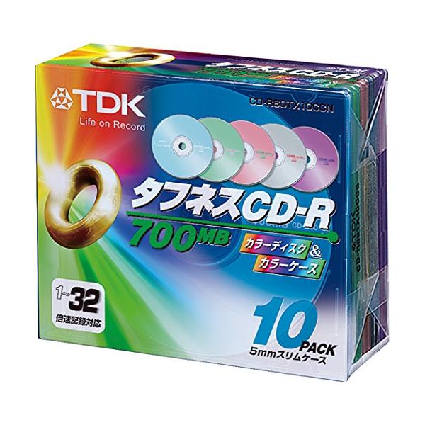 TDK データ用CD-R 32倍速対応 700MB 5色カラーミックスディスク 10枚パック CD-R80TX10CCN