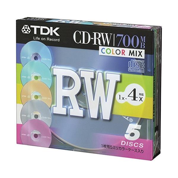 TDK CD-RWデータ用700MB 4倍速カラーミックス5mm厚ケース入り5枚パック [CD-RW80X5CCS]