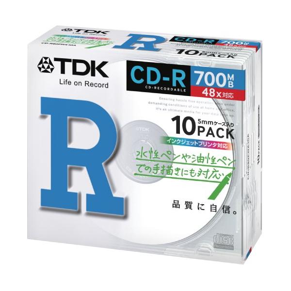 TDK データ用 CD-R 700MB 48X ホワイトプリンタブル 10枚パック CD-R80PWX10A