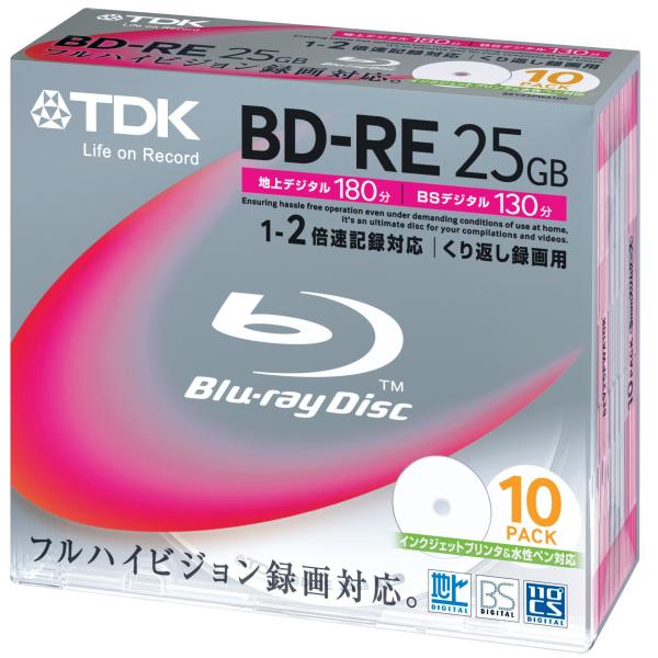 TDK 録画用ブルーレイディスク BD-RE 25GB 2倍速 ホワイトワイドプリンタブル 10枚パック BEV25PWA10K