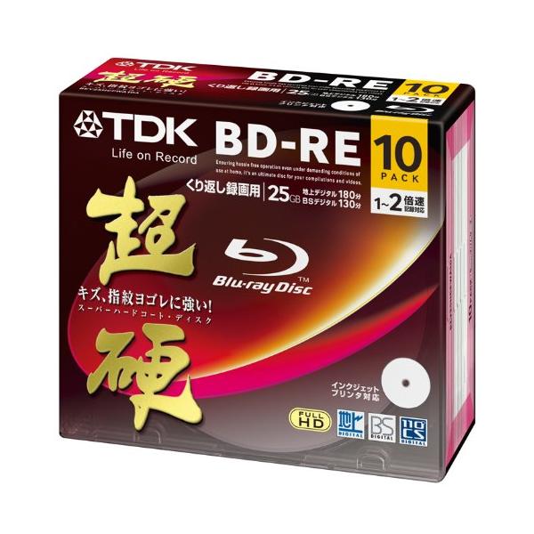 TDK 録画用ブルーレイディスク 超硬シリーズ BD-RE 25GB 1-2倍速 ホワイトワイドプリンタブル 10枚パック 5mmスリムケース BEV25HCPWA10A