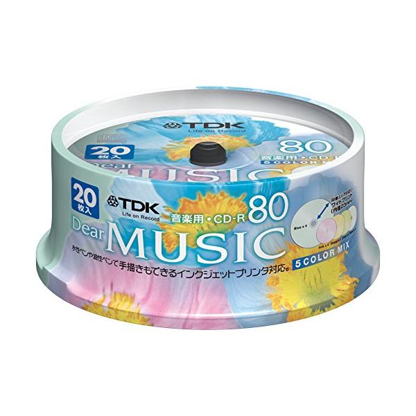 TDK 音楽用CD-R 80分 インクジェットプリンタ対応(5色カラーミックス・ワイド印刷仕様) 20枚スピンドル CD-RDE80CPMX20