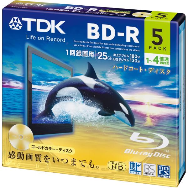 - TDK 録画用ブルーレイディスク BD-R 25GB 1-4倍速 ゴールドディスク 5枚パック 5mmスリムケース BRV25B5A規格:-R / 容量(GB):25種類:AV用 / 記録面:片面1層 / 4倍速入数:5盤面印刷:不可著作権保護:CPS