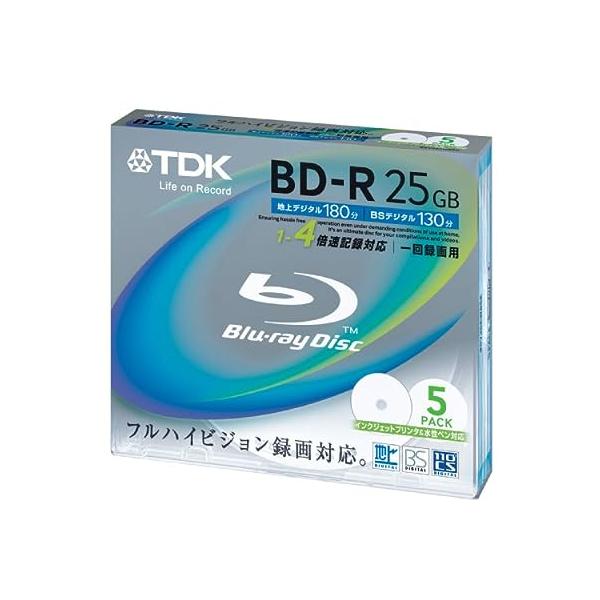 TDK 録画用ブルーレイディスク BD-R 25GB 1-4倍速 ホワイトワイドプリンタブル 5枚パック BRV25PWB5K