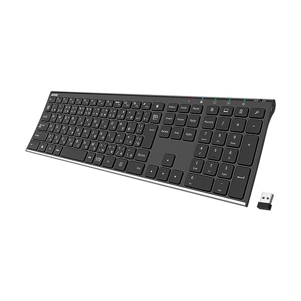 Arteck 2.4G ワイヤレスキーボード日本語配列 無線ステンレススチール 軽量 フルサイズキーボード テンキー付き コンピューター、デスク