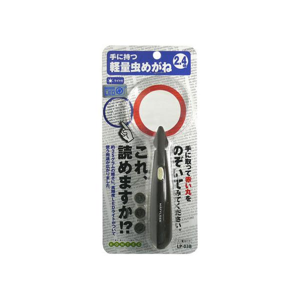 - 【商品説明】高品質アクリル製レンズだから軽くて扱いやすくなっています。レンズにフレームがないのでスッキリ見やすくなっています。湾曲グリップを採用。持ちやすく、手が疲れにくくなっています。高輝度LEDライトがついているので、使いやすさが広がります。【仕様】●外形寸法:W66×D34×H173(mm)●重量:約35g(電池込)●主な材質:レンズ:アクリル樹脂、本体:ABS樹脂●拡大率:約2.4倍●点灯方式:LEDライト <ジェットプライス>