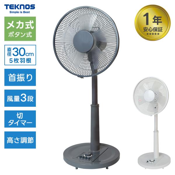 扇風機 メカ式 リビング扇風機 30cm ホワイト 押しボタン式 首振り タイマー シンプル KI-1710(W) KI-1710(G)テクノス