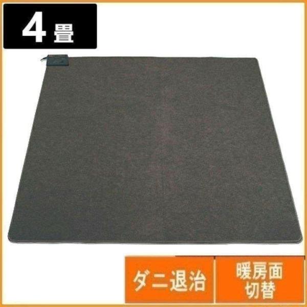 - 取寄せ商品。(お届けまで1週間ほどお時間がかかります。)お取寄せ商品【特長】足元から暖める床生活のスタンダード(4畳用)■折り畳み収納■ダニ退治■暖房面積切替【仕様】●消費電力:850W●素材:ポリエステル100%●表面温度:45℃(強)●電気代:約9.3円/時●サイズ:195×290cm●コード:約1.5m●色:ダークグレー