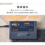 温度調節(弱〜強まで無段階)・暖房面積切換可能、自動切6時間タイマー、ダニ退治可能