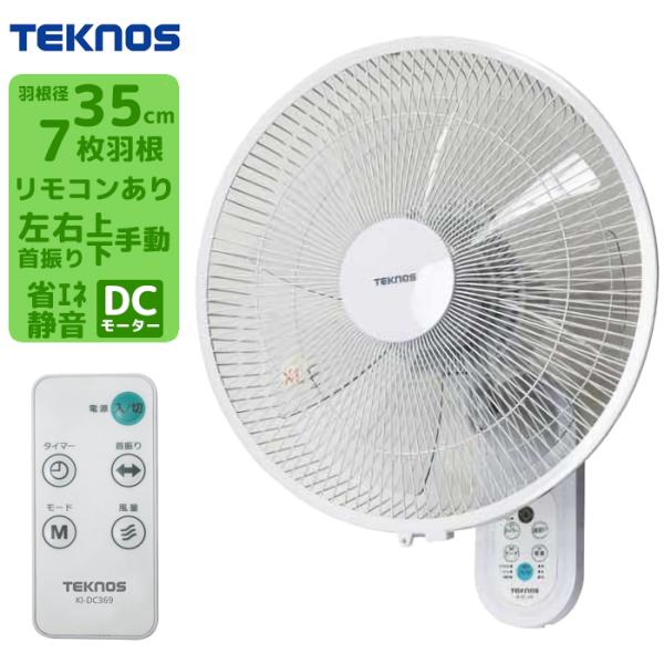 TEKNOS KI DC369 壁掛け扇風機 DCモーター壁掛けフルリモコン扇風機 35cm 7枚羽根 ホワイト KIDC369