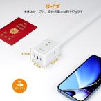 - 商品情報商品の説明主な仕様 【一台6役】3口あるACコンセント、一つのtype-cポートと二つのusb-aポートを搭載した延長コード、6台までのスマホやカメラなどデバイスを充電することも可能です。br【干渉しづらい】コンセントから3方向へ分配できる電源タップ。ACアダプタが大きくても、お互いに干渉することはありません。また、ACコンセント出力は最大1500W(125V/12A)、ほとんどの電気製品が使用可能です!br【使用便利】タコ足コンセントのケーブルが5mと長いため、コンセントから離れた場所でも便利。それに、180°スイングプラグで、狭い場所での使用にも対応しています。br【壁掛け/テーブルに】背面にフックが付いているので壁沿いにすっきりとテーブルタップを設置して省スペースにすることができます。テーブルの上に直接置くこともでき、背面にも滑り止めマットが付いているので不安定やテーブルを傷つける心配はありません。br【スマートIC機能】USB-Aポートは最大5V/2.4A、USB-C出力は5V/3Aに対応し、接続したスマホやタブレットの入力電流を自動検知し、最適な電流で充電できます。
