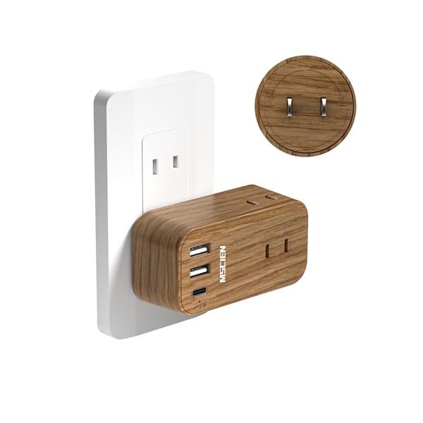 MSCIEN 電源タップ コンセント USB付き タイプC 木目 回転 3個AC差込口 1個USB-Cポート 2個USB-Aポート たこあしコン