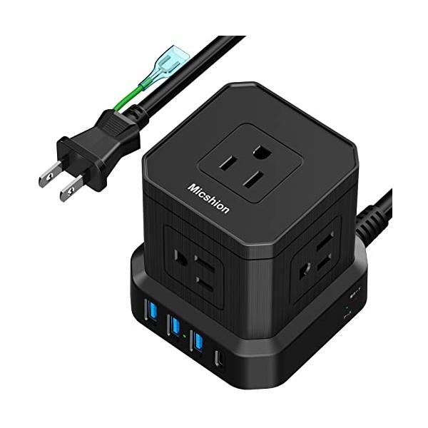 Micshion キューブ型電源タップ 3M Type-C付 コンセントusb付き 延長コード 5個AC口 4個USBポート 雷ガード 電源タッ