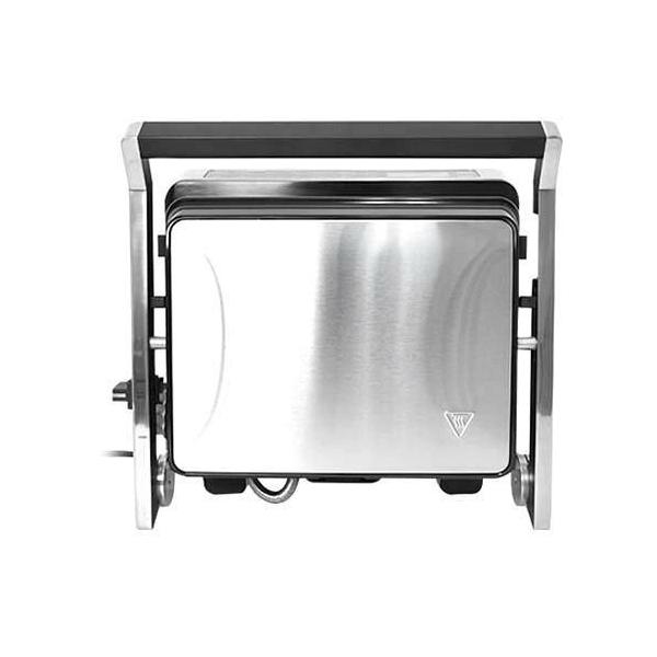 - サイズ 本体:幅360×高さ340×奥行140(mm)プレート:幅290×高さ230×奥行10(mm) 重量 約4.1kg(本体・プレート含む) 電源 AC100V 50/60Hz 定格消費電力 1000W ヒーター温度範囲 120~230℃ タイマー設定 5~60分 かんたんメニュー 5種類 油トレイ 200ml ケーブル長 150cm 安全装置 サーモスタット、温度ヒューズ 素材 本体:ステンレス プレート:アルミニウム合金 付属品 本体、プレート、油トレイ、日本語説明書 注意事項 ※記載されている物以外は付属いたしません。 ※落としたり強い衝撃を与えないでください。 ※分解しないでください。 ※本製品をご利用において生じる物品の破損は、保証の対象外となります。 ※異常を感じたらただちにご使用をやめ、弊社カスタマーサポートまでご連絡ください。 ※ご使用中においてのお客様の過失による故障、破損、改造等はサポート保証の対象外となります。 ※正しく使用されない場合に生じた事故等について弊社での責任は負いかねます。 ※製品仕様は改善のため予告なく変更する場合があり、そのため説明書記載の内容と異なる場合があります。 パッケージサイズ 幅400×高さ380×奥行190(mm) パッケージ込み重量 約4.5kg 保証期間 購入日より12カ月 発売日 2022/12/2 ※仕様は改善のため予告無く変更する場合があります。お肉がパリッと短時間で美味しく焼ける、こだわりのコンタクトグリル 上下を挟んでプレスして焼く、だから短時間で肉が美味しく焼きあがります。 特に厚みのある肉、しっかり皮目を焼きたい鶏肉におすすめ。 挟んで焼くことにより、焼きむらができずに均一に火が通ります。 BBQの時のような焼き上がりで旨味アップ。 ホットプレートとしても使えて、立てて収納可能なプレートグリルです。 挟んで時短で美味しく焼く 厚みのある肉をフライパンでしっかり焼こうとすると、かなり時間がかかります。 もっとスピーディに!しかも美味しく焼くならば、挟んで焼くのがおすすめです! プレスグリルは上下の鉄板で肉を挟み込んで、上下で熱をかけて焼くので、あっという間に焼きあがります。 しかも挟んで押さえているので、肉の厚みが均一になり焼きむらができにくくなります。 プレスすることで肉からでる油は、本体の油トレイに溜まって周りが汚れにくくしかもヘルシーです。 上下の高さ5段階調整、ホットプレートとしても使えます 上下のプレートのすき間は5段階で調整可能です。 完全にプレスせずに挟んで焼くことができます。 また上下のプレートを完全にフラットにすれば、ホットプレートとして使用することができます。 卓上で肉や野菜を焼いて食べることができます。 温度・タイマー設定可能、かんたんメニューもあり 上下のプレートは別々に温度を設定することができるので、こだわりの焼き加減で焼くことができます。 ホットプレートとして使う時でも左右で違う温度で焼くことができます。 細かく温度設定するのは面倒、といった場合はあらかじめセットされたメニューがあるので安心です。 お手入れ簡単で収納しやすい プレートと油トレイを外して洗えるのでお手入れ簡単。 また本体を立てて収納できるので、場所をとりません。 肉を焼く以外にも使えます 肉料理や野菜以外にも、魚やホットサンド、パニーニやハンバーガー、焼きおにぎりなど。 焼く調理ならおまかせです! 卓上で熱々を食べられます。 サイズ詳細 ☝ページトップ