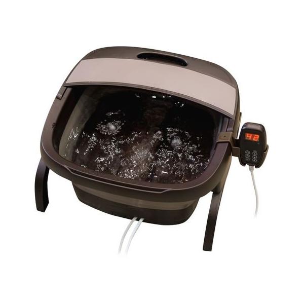 - 商品説明★ 気軽に足湯を楽しめる超コンパクトサイズ★ 自宅で味わう、至福のひと時。★ 温度調整35〜47度で保温。速暖最速10分。加熱式だから水道水OK!水からでも10分〜30分でお湯に!★ タイマー設定最長60分。自動タイマー。★ バブル機能水量3〜7L。リラックス効果。★ よりコンパクトに、より使いやすく小さくなりました。ぐっとコンパクトになったので、持ち運びも収納もさらに便利になりました。★ 小休憩火照ったときは足を上げて小休憩。長く楽しめる、嬉しい仕様です!★ 安定性折り畳み可能な2脚の足で安定性抜群!※エラー表示温度が60 度を越えると「E0」エラー表示が出ます。温度が60 度以下になると「E0」エラー表示が消えます。温度が下がってもエラー表示が消えない場合は使用を中止してください。※注意事項・入浴剤やアロマを入れると変色や着色の可能性があります。仕様上直接ヒーターと水が触れるため、通常の水道水(お湯)でご使用いただくことを推奨しております。・ご使用中においてのお客様の過失による故障、破損、改造等はサポート保証の対象外となります。・内容品に記載している以外の物は付属しません。・本製品をご利用において生じる物品の破損/故障は、保証の対象外となります。・異常を感じたらご使用をやめてカスタマーサポートまでご連絡ください。・製品仕様は改善のため予告なく変更する場合があり、そのため説明書記載の内容と異なる場合があります。スペック* サイズ…・折り畳み時: 幅約360×高さ約90×奥行約350mm・使用時: 幅約360×高さ約180×奥行約350mm* 重量: 約1.65kg* 定格電圧: 100V* 定格周波数: 50/60Hz* 定格消費電力: 500W* サーモスタット: 85度* 温度ヒューズ: 117度* 容量: 3〜7L* 温度調整: 35〜47度(±1 度づつ)* タイマー: 30/40/50/60 分(電源ON 時必ずタイマー作動、タイマーはOFF に出来ません)* 対応足サイズ: 27cmまで ※商品ページ内のモデルの足は25cmとなります。* 電源ケーブル長: 180cm* 空だき防止機能: あり* その他: 屋内用* セット内容: 本体、リモコンホルダー、日本語説明書* パッケージサイズ: 幅405×奥行き435×高さ130mm* パッケージ込み重量: 約2.3kg* 保証期間: 購入日より12カ月【送料について】北海道、沖縄、離島は送料を頂きます。