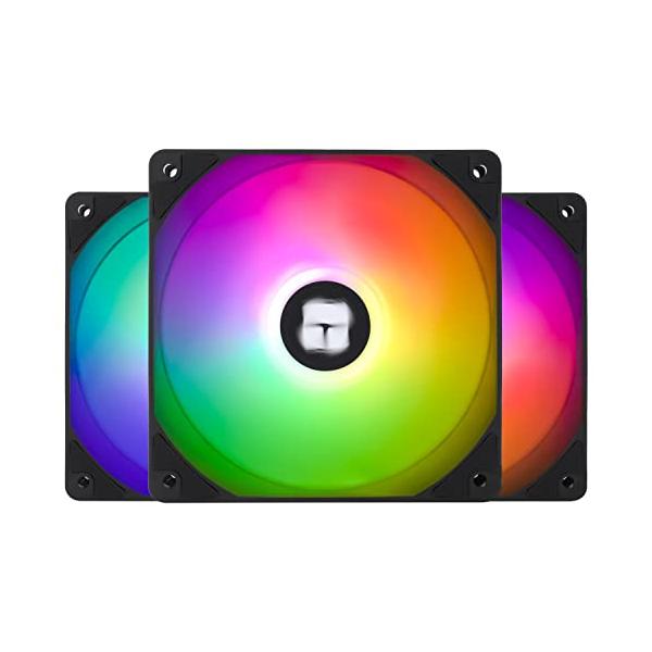 Thermokay TL-C 12 C-SX 3 CPUファン120 mm ARGBシャーシ冷却ファン、S-FDBベアリングを含む4ピンPWM静音パソコンファン、最大1550 RPM冷却ファン(3台数)
