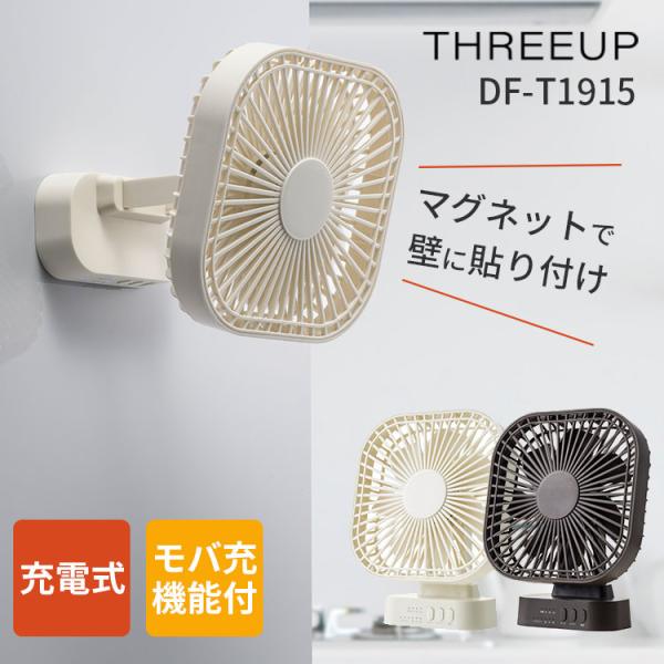 THREEUP 充電式コードレスファン DF-T1915|コードレスファン 卓上 壁掛け モバイル充電機能付き/海外×