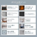 幅広の吹出口から出るミストにLEDライトを当てることで炎の揺らぎを演出する加湿器。照明を落とせば焚火のような癒し空間をお手軽に楽しむことができます。加湿方式は超音波&ヒーターのハイブリッド式を採用、超音波振動で水からミストを発生させ、お部屋を加湿します。適用床面積は6畳。無駄な要素を省いたミニマルなデザインはスタイリッシュな印象です。色はホワイトとグレーの2色を用意。前面にはタッチ式のボタンを搭載、そっと触れるだけで操作ができます。ミスト量は3段階で調節可能、最大6時間のオフタイマー機能も搭載。