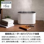 タンク容量:2.2L最大加湿量:210ml/h加湿方式:ハイブリッド(超音波+ヒーター)加湿連続運転時間:約10時間〜約26時間適用床面積(目安):6畳(洋室・プレハブ)、3畳(和室・木造)
