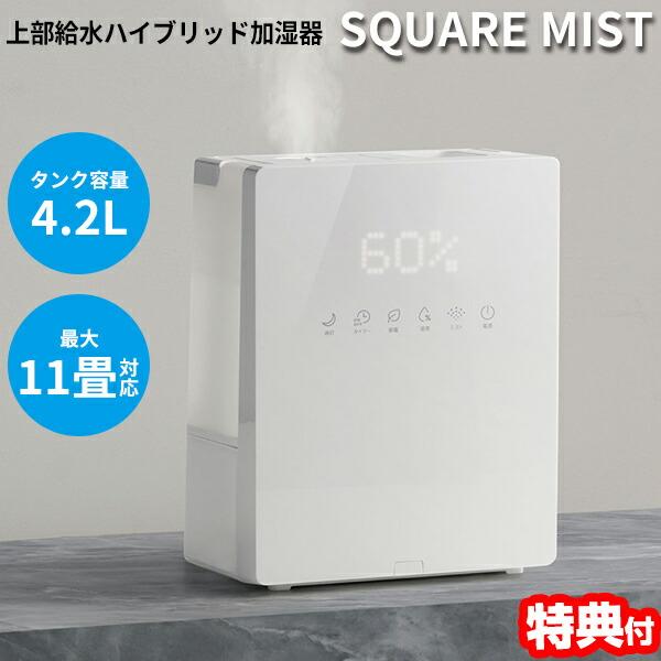 スリーアップ 上部給水式ハイブリッド加湿器 スクエアミスト HB-T2425WH 加湿器 SQUARE MIST ホワイト 乾燥 おしゃれ 加湿機 自宅 リビング 寝室