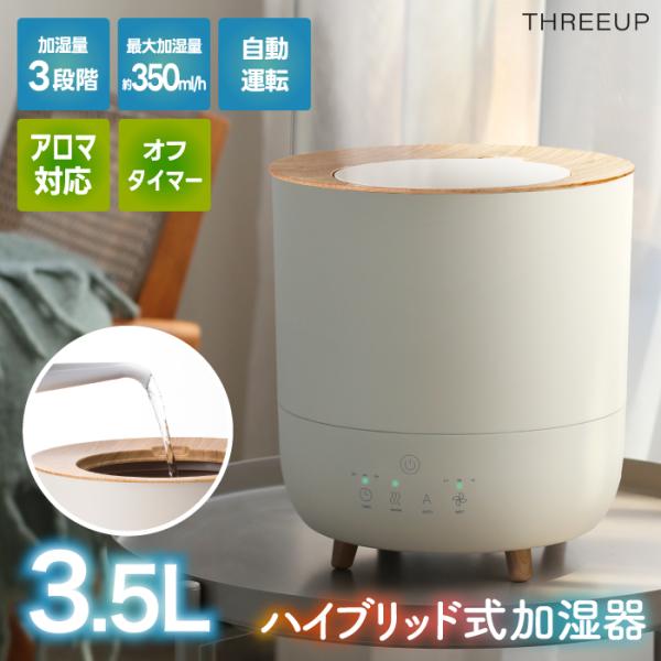 パワフル タッチパネル インテリア 乾燥対策 ハイブリッド式 加熱式加湿器 寝室 おうち時間 ホワイト おすすめ 人気 スリーアップ three-up