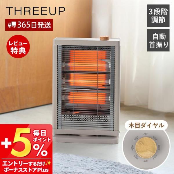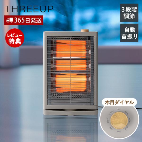 首振り 機能付 ストーブ 電気 おしゃれ 自動 オフ ヒーター スリム 暖房 木目 かわいい 軽量 北欧 3段階調節 DS-T2512 THREEUP WOOD STYLE