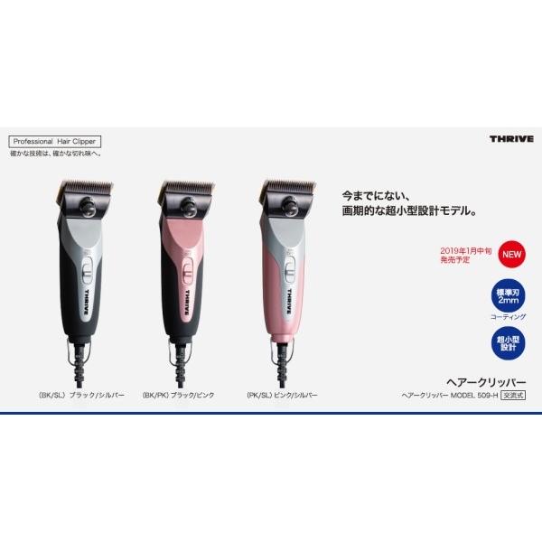 - 商品情報 商品名 THRIVE スライヴ ヘアークリッパー MODEL 509-H 2mm刃付 商品仕様 型番:MODEL 509-H 電源方式:交流式 アダプター定格:AC100V 50/60Hz 10W 定格時間:10分 ストローク:約1850回/分 電源コード長さ:約2.5m 質量(刃付):約235g 外形寸法(刃付):長さ 約118mm×幅 約45mm×高さ 約37mm 付属品:オイル、ブラシ JANコード:ブラック/シルバー 4975287700256 ブラック/ピンク 4975287700263 ピンク/シルバー 4975287700270 商品説明 長さ11.8cmの超小型設計モデル。 手にフィットする超小型設計で、持ちやすさ、握りやすさを実現。 超小型ボディによる操作性、作業性が大幅に向上しました。 3色のカラーバリエーションで選ぶ楽しみが広がります。 ニッケルボロン刃(2mm)チタンコーティング(下刃) 長年の知識と経験豊かな職人が手がける刃は、確かな切れ味をお約束します。 静音性、防錆性、高硬度性、耐摩耗性に優れる。 関連商品 ・THRIVE 販売元 大東電機工業株式会社 区分 美容家電、サロン専売品 > 散髪用バリカン 広告文責 ビューティシモ株式会社 プロ用ヘア&コスメShopNetsbee