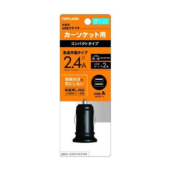 - TOPLAND CHDC24ABK カーソケット用 USBアダプタ ブラック●車載用USBアダプタ●ケーブルの接続向きを気にしない両面挿し対応USBポート●USBポート2個付でお手持ちのケーブル等を使用して2台の端末を同時に充電する事が可能【仕様】サイズ:幅27×奥行28×高さ49mm重量:0.01kgUSB最大出力:2.4A