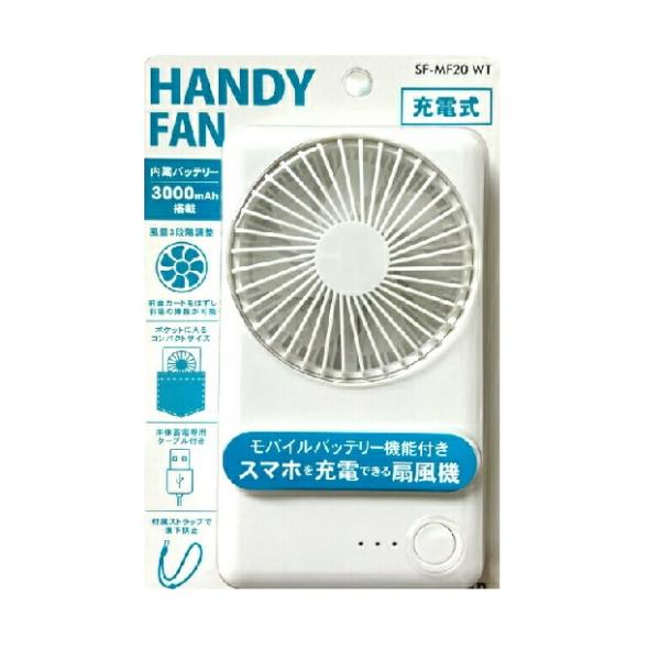 ハンディファン モバイルファン トップランド 内蔵バッテリー 3000mAh SF-MF20 WT 携帯扇風機 扇風機