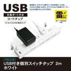 ・電源タップ USB 延長コード 個別スイッチ付き 2m ホワイト