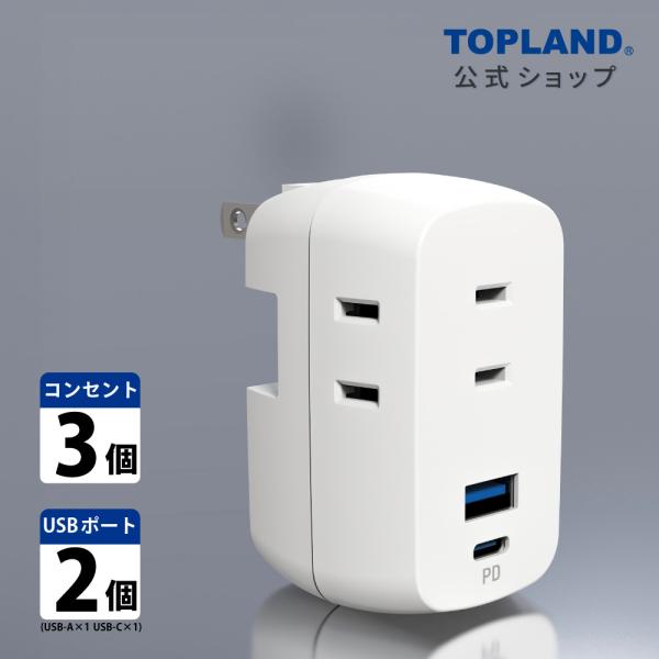 電源タップ USB コンセント ACアダプタ タップ PD20W 3個口 Type-C スイングプラグ ホワイト TPD2-WT トップランド 公式ショップ