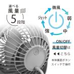 コンパクトファンです。5段階の風量調整に加え、暑さが一気に吹き飛ぶ“ジェット風”も搭載。