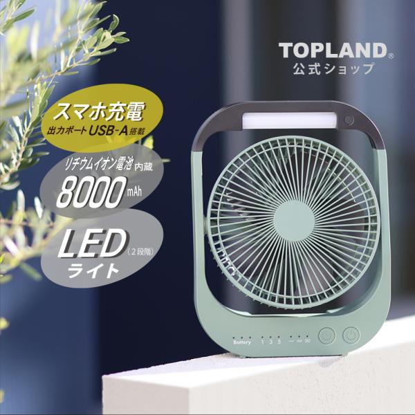 卓上扇風機 コードレス 静音 充電式 USB 給電 3WAY 電源 小型 ハンドル付き ライト 家庭用 持ち運び グリーン SF-DFC55LG トップランド 公式ショップ