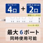 TOPLAND(トップランド) USB 電源タップ AC4個口 USBポート2個口 延長コード 1m 雷ガード 個別スイッチ ほこり防止シャッター付き
